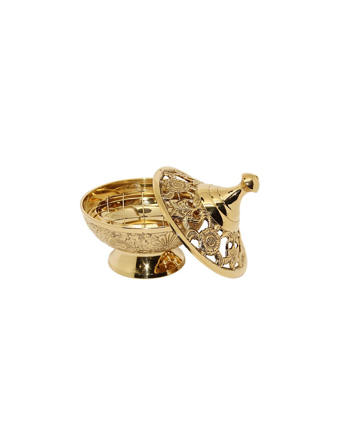 Kupfer censer Deckel gekrönt mit einem Kreuz, von Hand bearbeitet.Abmessungen des Behälters: 12 cmGewicht: 450 grCode: 10006351Räuchergefäß mit Kette Kupfer