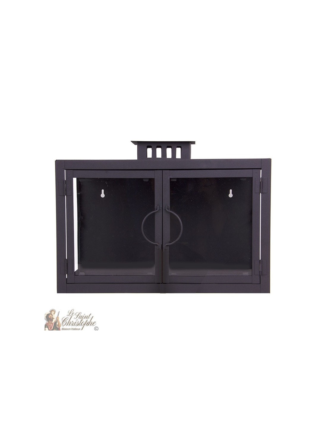 Price only for resellersGroßer rechteckiger Glaskerzenhalter mit zwei Türen und zwei Kerzenplätzen.