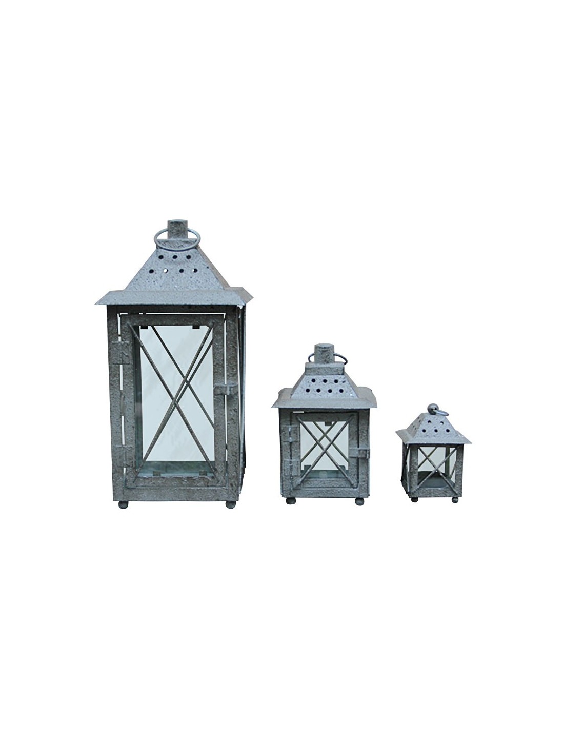 Laterne aus schwarzem, schmiedeeisernem Metall, geeignet für Teelichter.Für den Außenbereich geeignet, muss aber lackiert werden.Höhe: 27 cmBreite: 14 cm