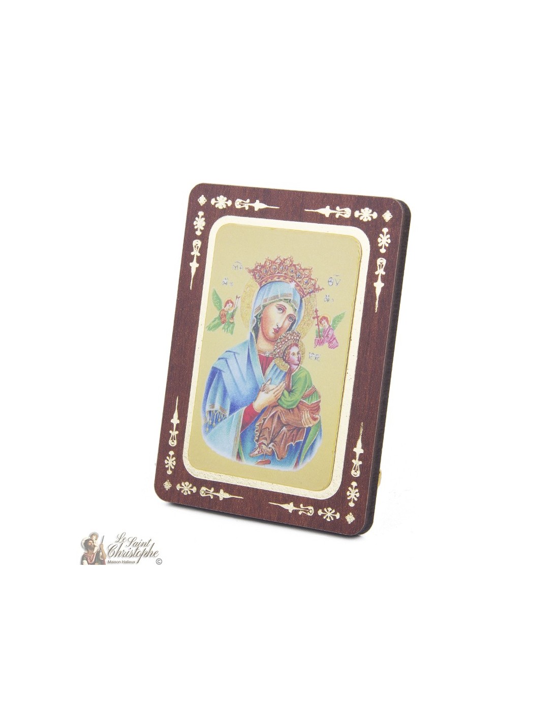Dieser Rahmen Unserer Lieben Frau von der Immerwährenden Hilfe ist eine kleine Ikone, die leicht zu tragen oder in einem Zuhause zu platzieren ist! Das Holz ist leicht und dennoch stark, mit eingravierter Vergoldung, um das Bild Unserer Lieben Frau von der Immerwährenden Hilfe hervorzuheben.