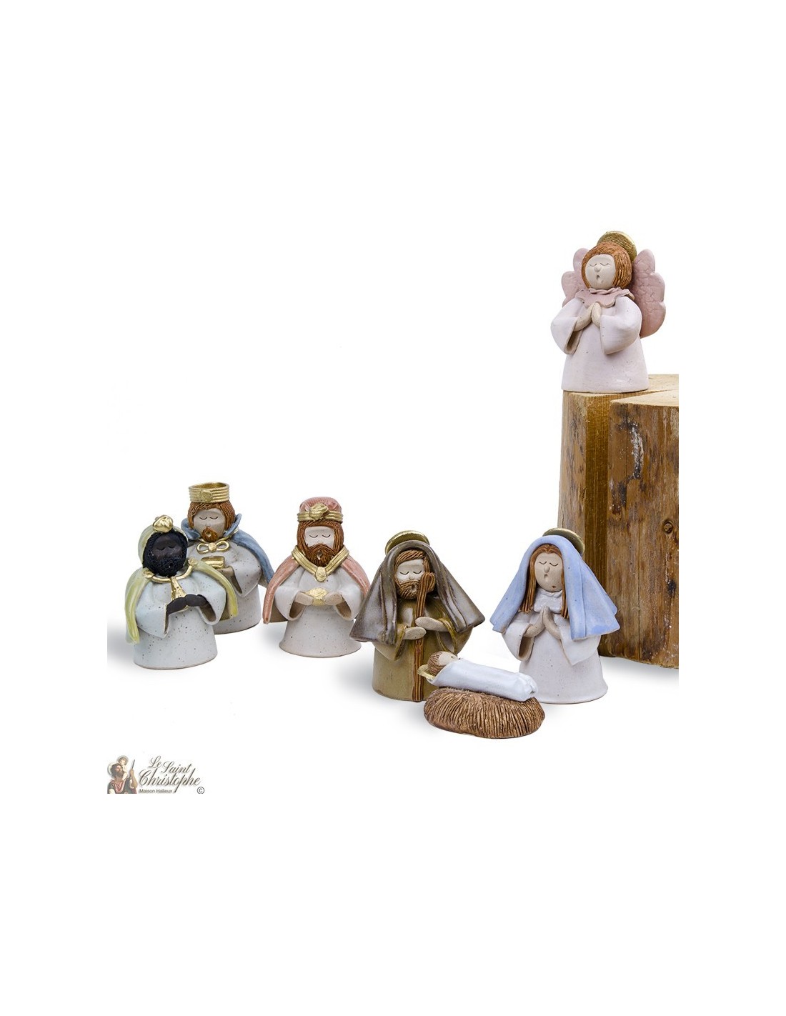 Komplette Weihnachtskrippe mit den Figuren Jesus, Maria und Josef in einem handgefertigten Weihnachtsbaum aus grünem und rotem Terrakotta mit einigen Goldakzenten und silbernem Glitzer.Diese kleine Krippe ist eine ideale Weihnachtsdekoration mit wunderschönen Details.Höhe: 7,5 cm