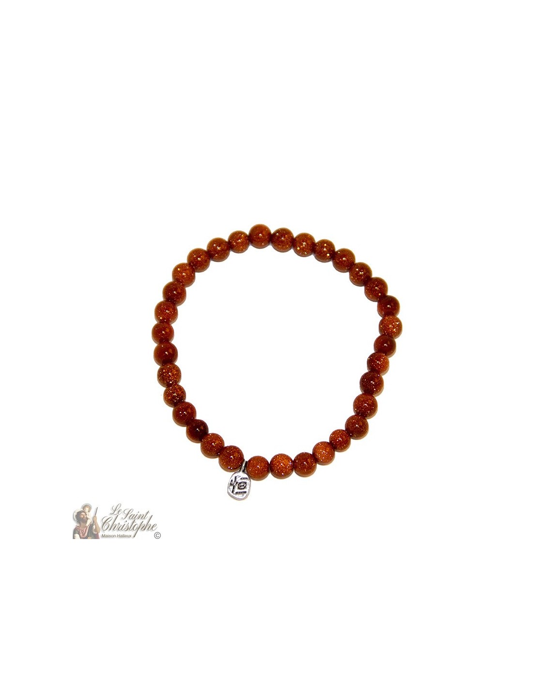 Price only for resellersElastisches Drahtarmband mit Kunststeinperlen, Goldstein-Sonnenstein. Begleitet von einem kleinen Silberanhänger verleiht dieses Armband Ihrem Handgelenk eine weiche und ruhige Note.