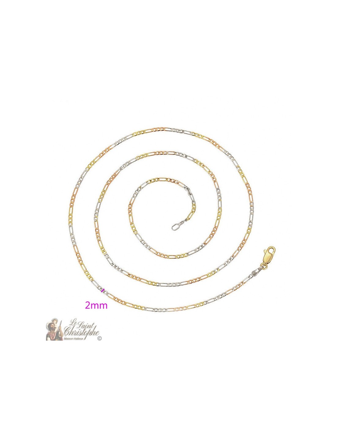 Figarokette mit Gold-, Roségold- und Silbergliedern, 60 cm