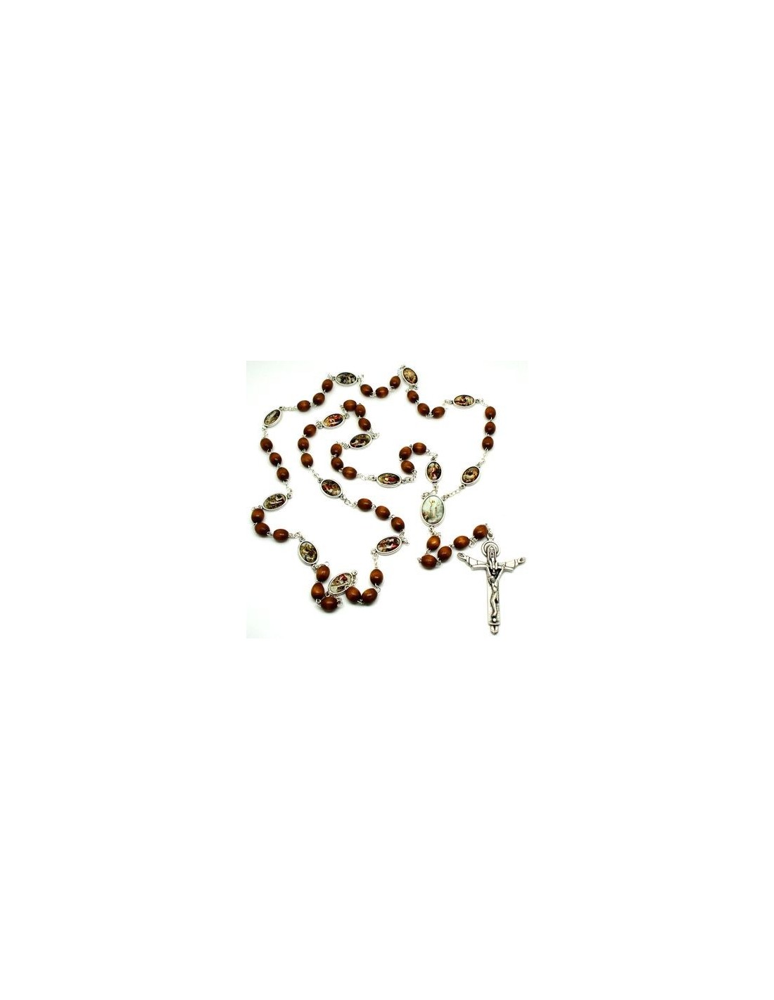 Chapelet du Sacré Coeur de Marie en plaqué or 14 carats, avec fermeture mousqueton pour l'attacher en collier. La médaille centrale du Sacré Coeur de Marie est en couleurs, gravée d'une croix au dos. Vendu avec une pochette pour le ranger.