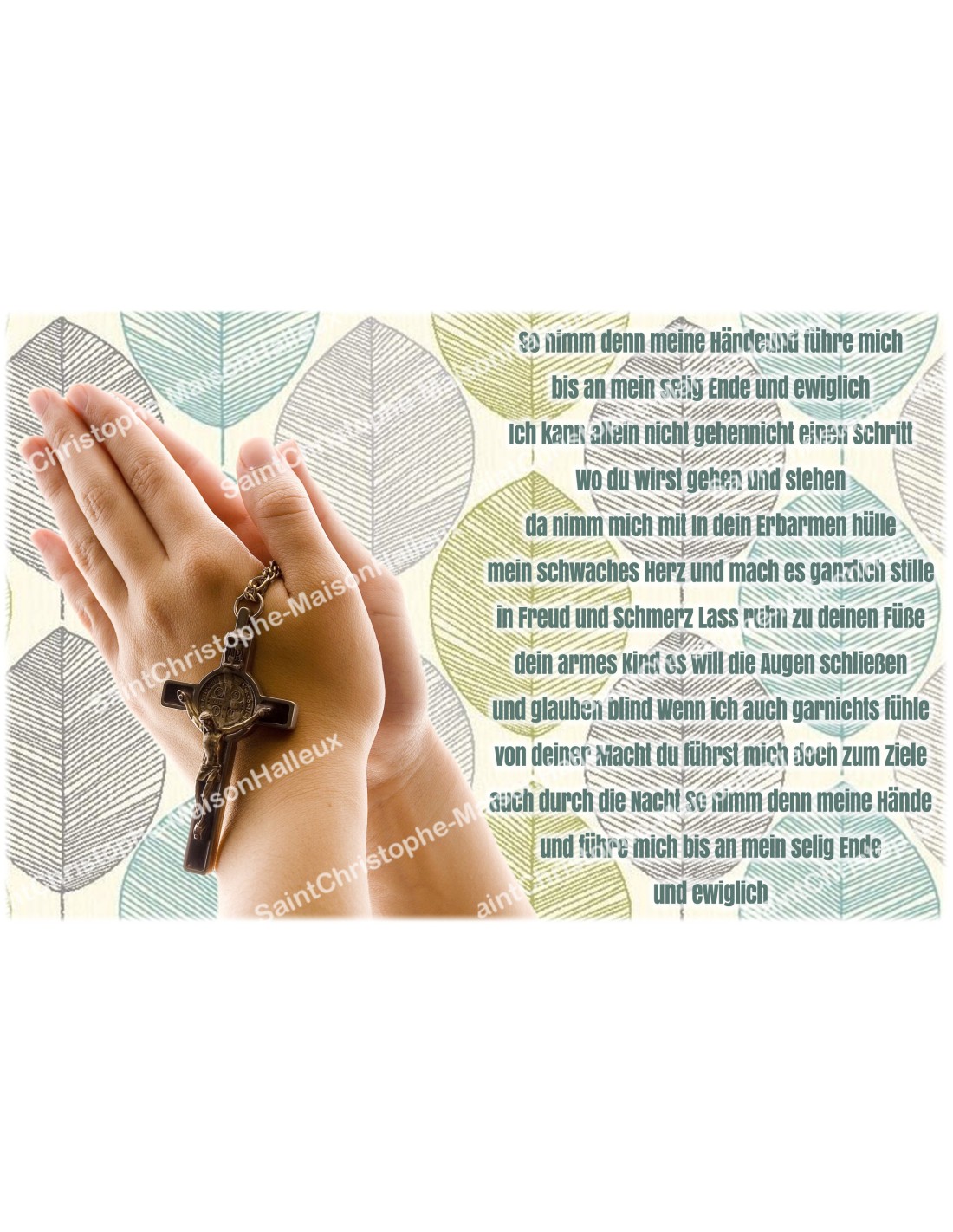 The sticker features an image of hands clasped in prayer with the cross of Jesus Christ from a rosary visible, along with a prayer dedicated to God.