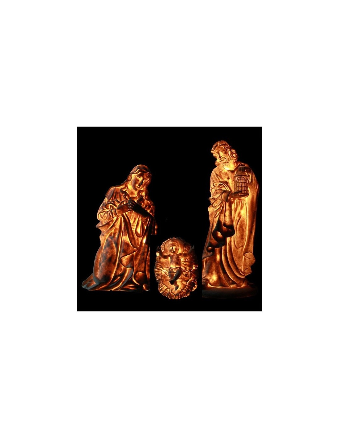 Complete Christmas nativity scene with figures of Jesus, Mary, and Joseph in a green and red terracotta Christmas tree with touches of gold and silver glitter, handmade.This small nativity scene is an ideal Christmas decoration with beautiful finishes.Height: 7.5 cm