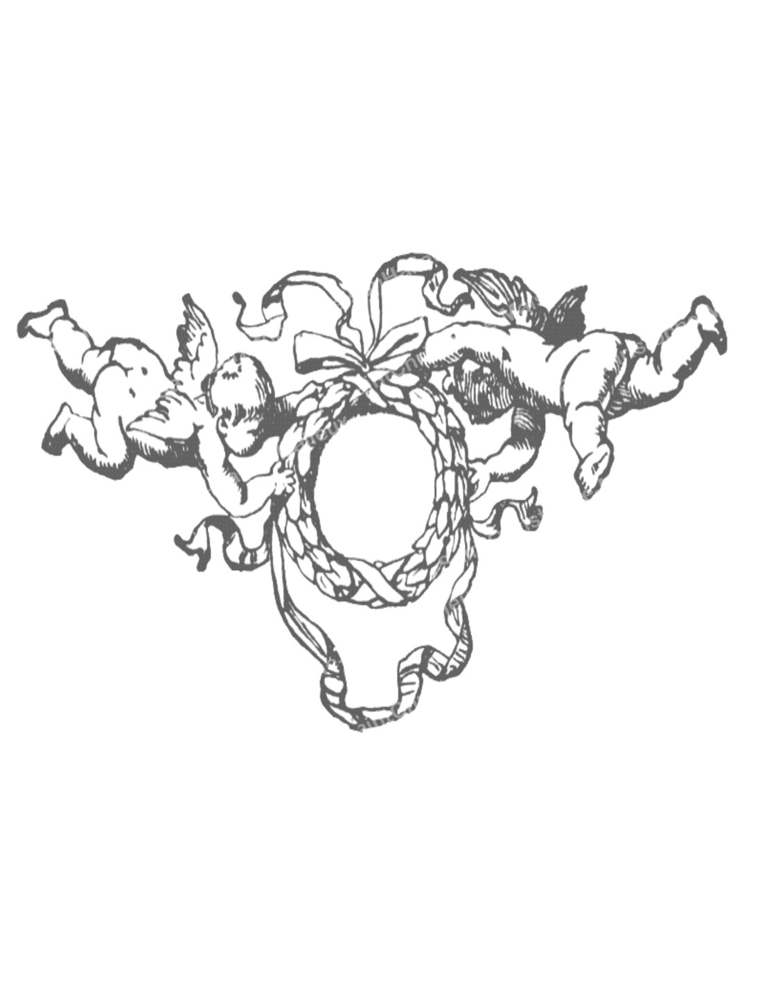 The sticker is a decorative image of little angels, cherubs, holding a crown of flowers together.