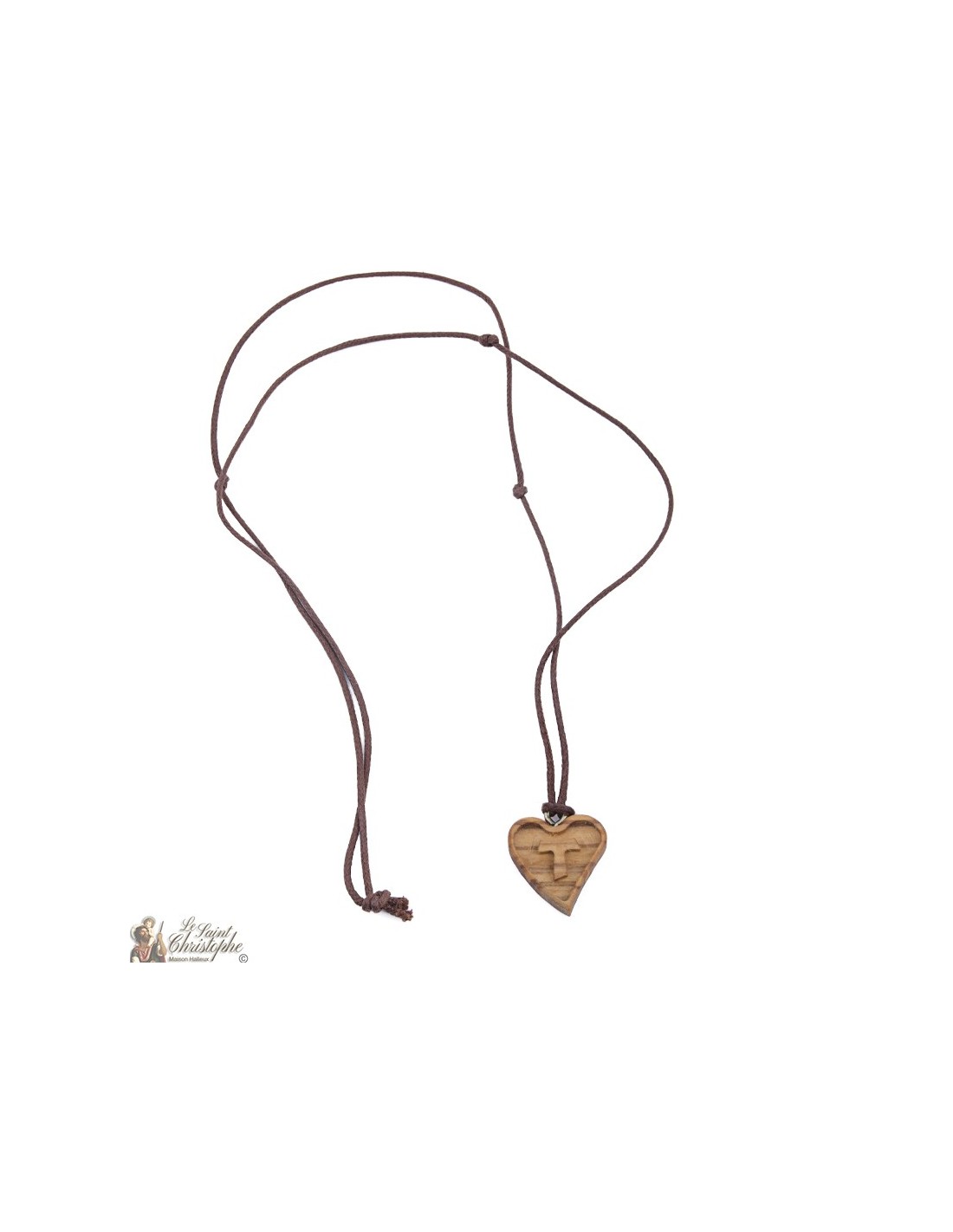 Cord Necklace - Wood Heart with Tau Sign