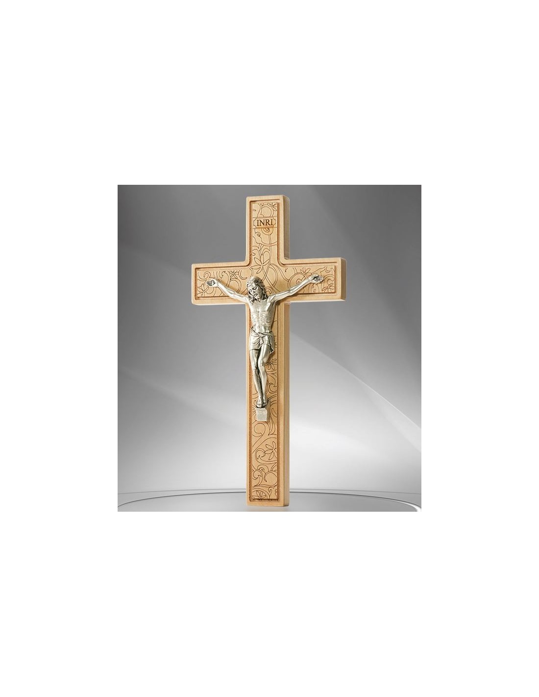 Price only for resellersCross in natural wood, carved with flowers. The effigy of Jesus Christ is in silver plated metal.