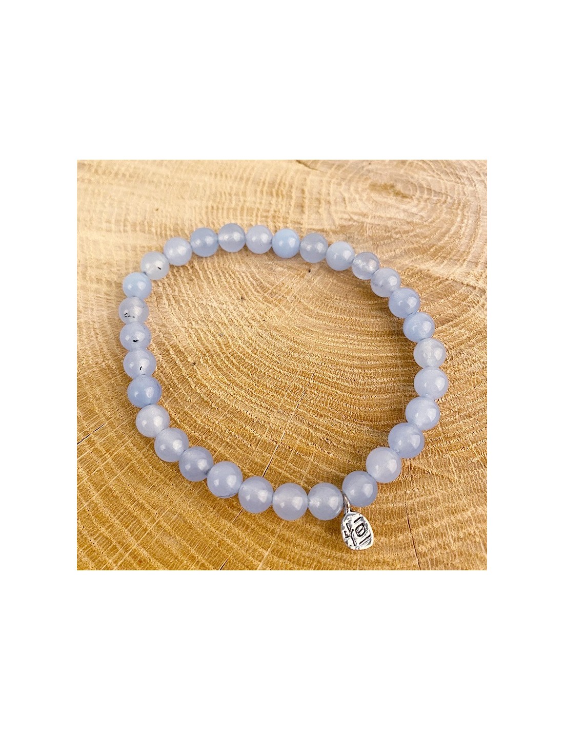 Price only for resellersElastic thread bracelet made of fine natural blue jade stones. Accompanied by a small silver charm, this bracelet brings a soft and quiet touch to your wrist.