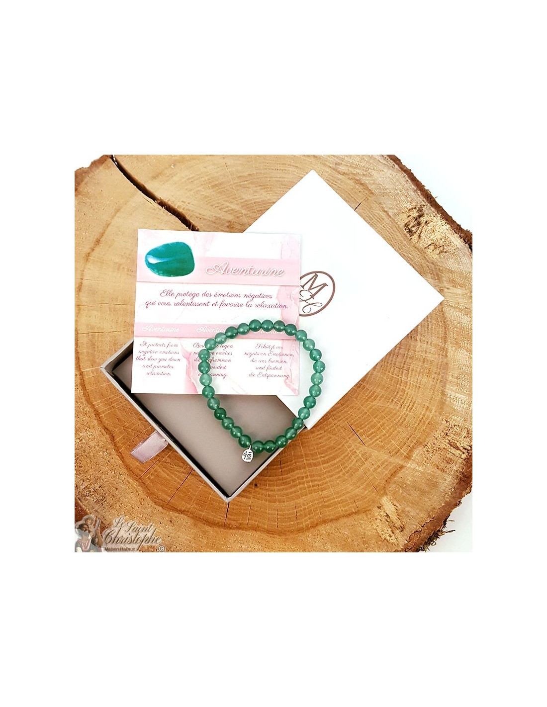 With delicate shades of green, aventurine is a stone linked to the heart chakra that helps to calm emotions and rebalance them by repelling negative emotions that slow us down. Thus, it calms the mind and promotes relaxation, letting go and unconditional love. It also protects the wearer from negative energies or people who tend to reduce our morale and energy. With a clearer mind, aventurine allows for greater self-knowledge, contributes to greater autonomy and creativity by enlightening our horizons. According to the principles of lithotherapy, aventurine is useful on the physical level for the muscles in case of aches and pains and to strengthen the heart and lungs.