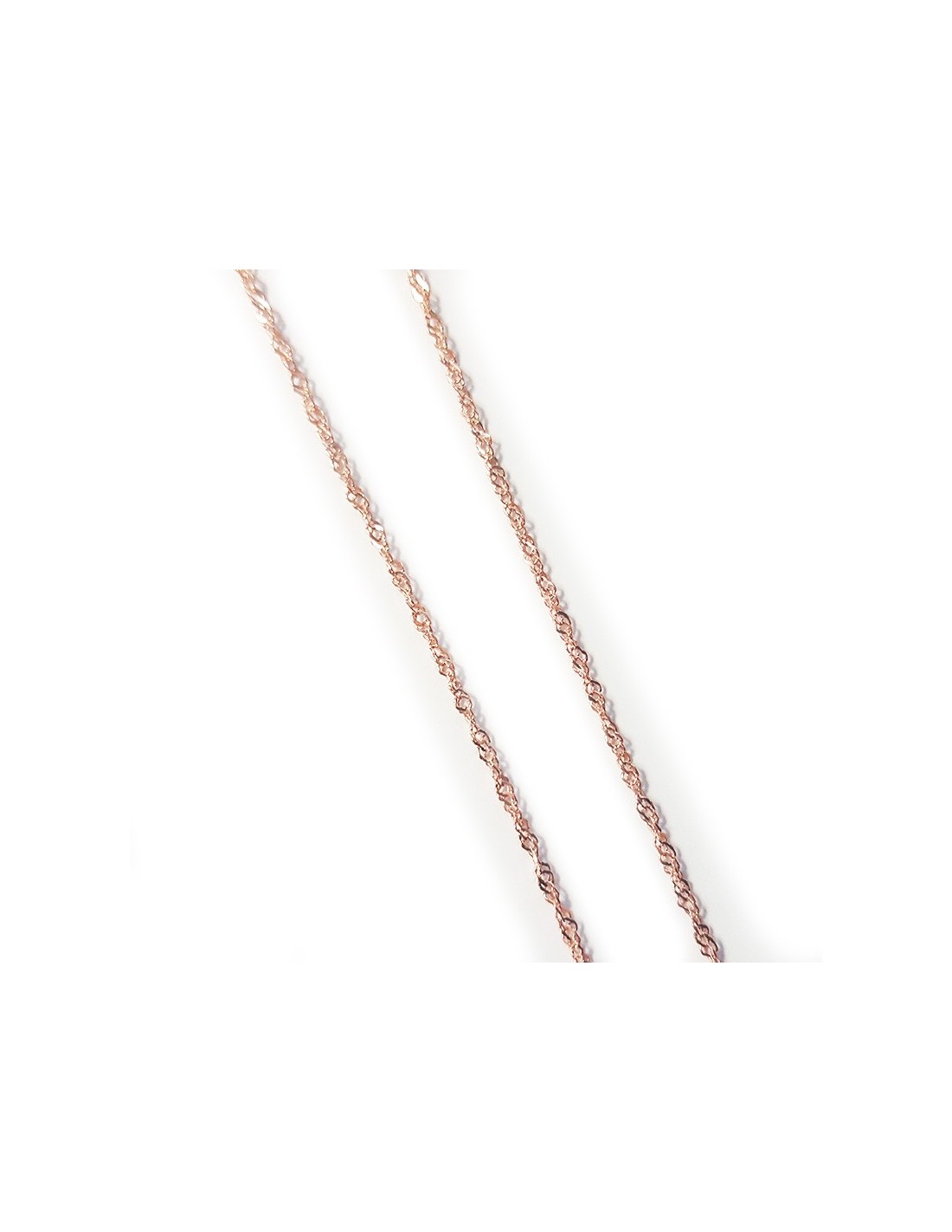 Singapore chain of 45 cm in silver 925 plated pink gold, recognizable by its links delicately intertwined. Very comfortable, this chain is sophisticated and chic, to be worn alone or married harmoniously with a pendant.