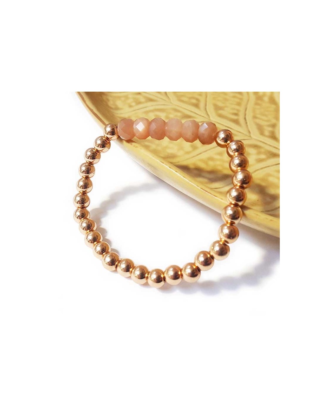 Price only for resellersBracelet with golden beads and six faceted sunstone beads. Trendy, it's a luminous jewel that brings a touch of naturalness.