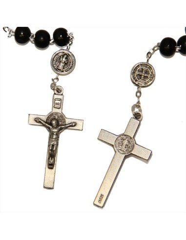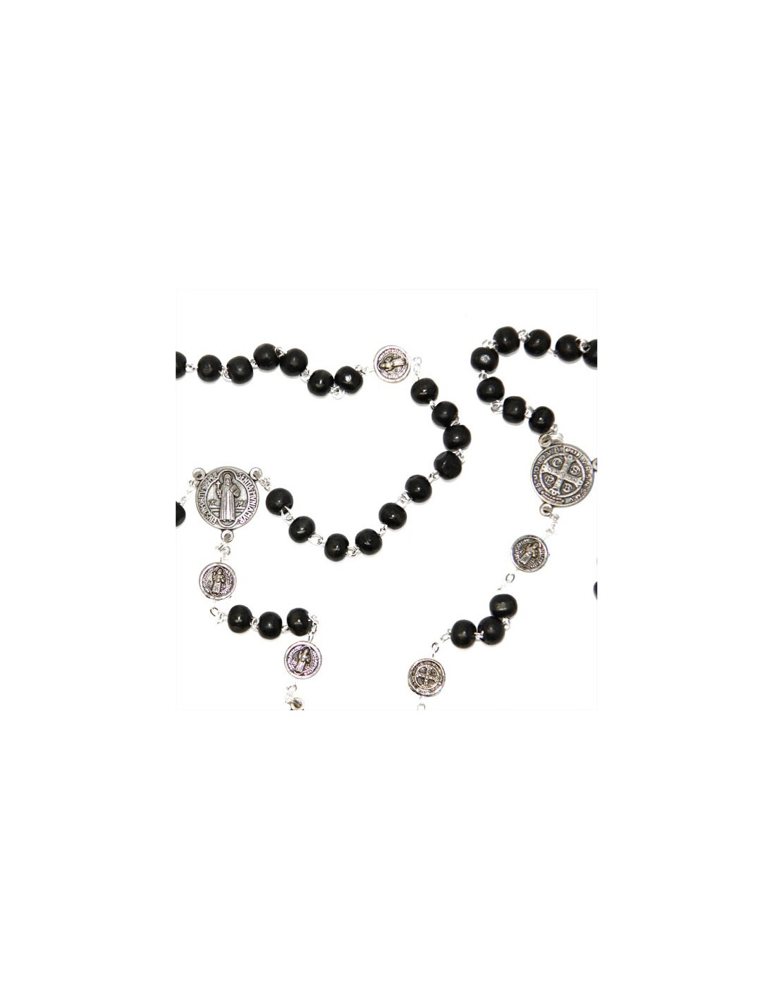 Rosario del Sagrado Corazón de María chapado en oro de 14 quilates, con cierre de langosta para engancharlo como collar. Medalla central del Sagrado Corazón de María en color, grabada con una cruz en el reverso. Se vende con una bolsita para guardarla.