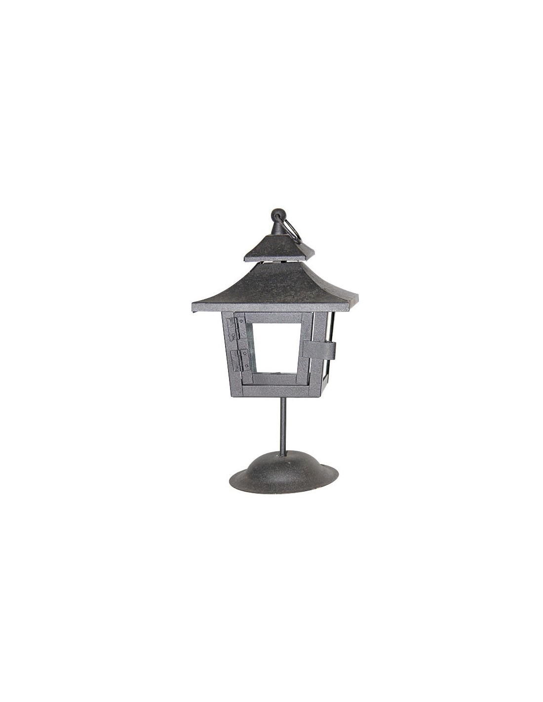 Farol de metal negro sobre soporte - 27 cm