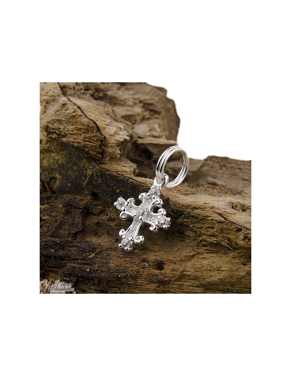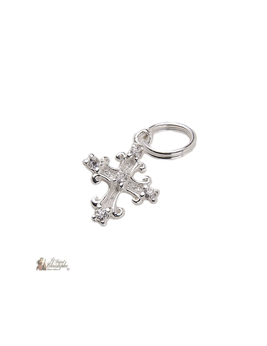 Colgante de plata chapada en oro 925 con forma de cruz e incrustaciones de cristales. Una joya elegante y brillante.