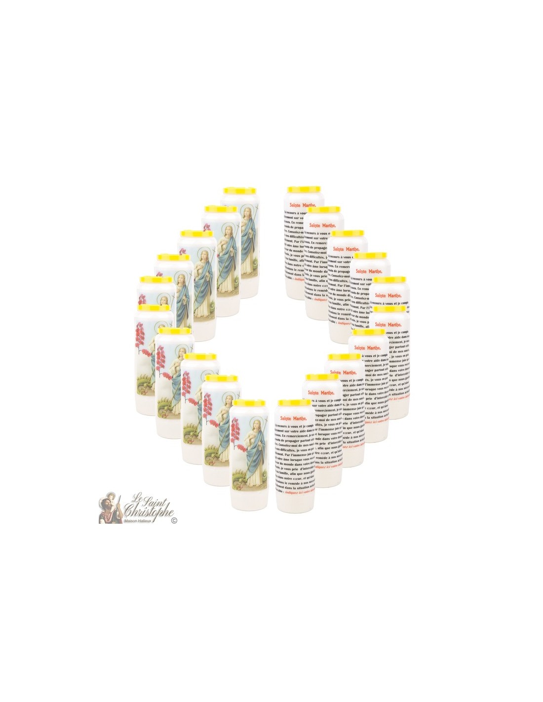 (20 velas de novena neutras y 20 pegatinas estarán en la caja)