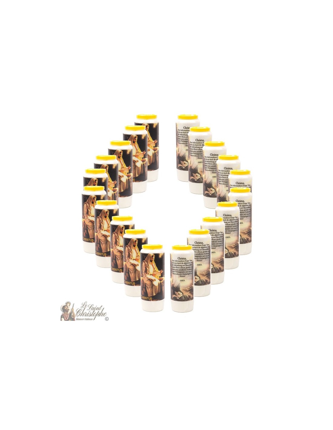 (20 velas de novena neutras y 20 pegatinas estarán en la caja)