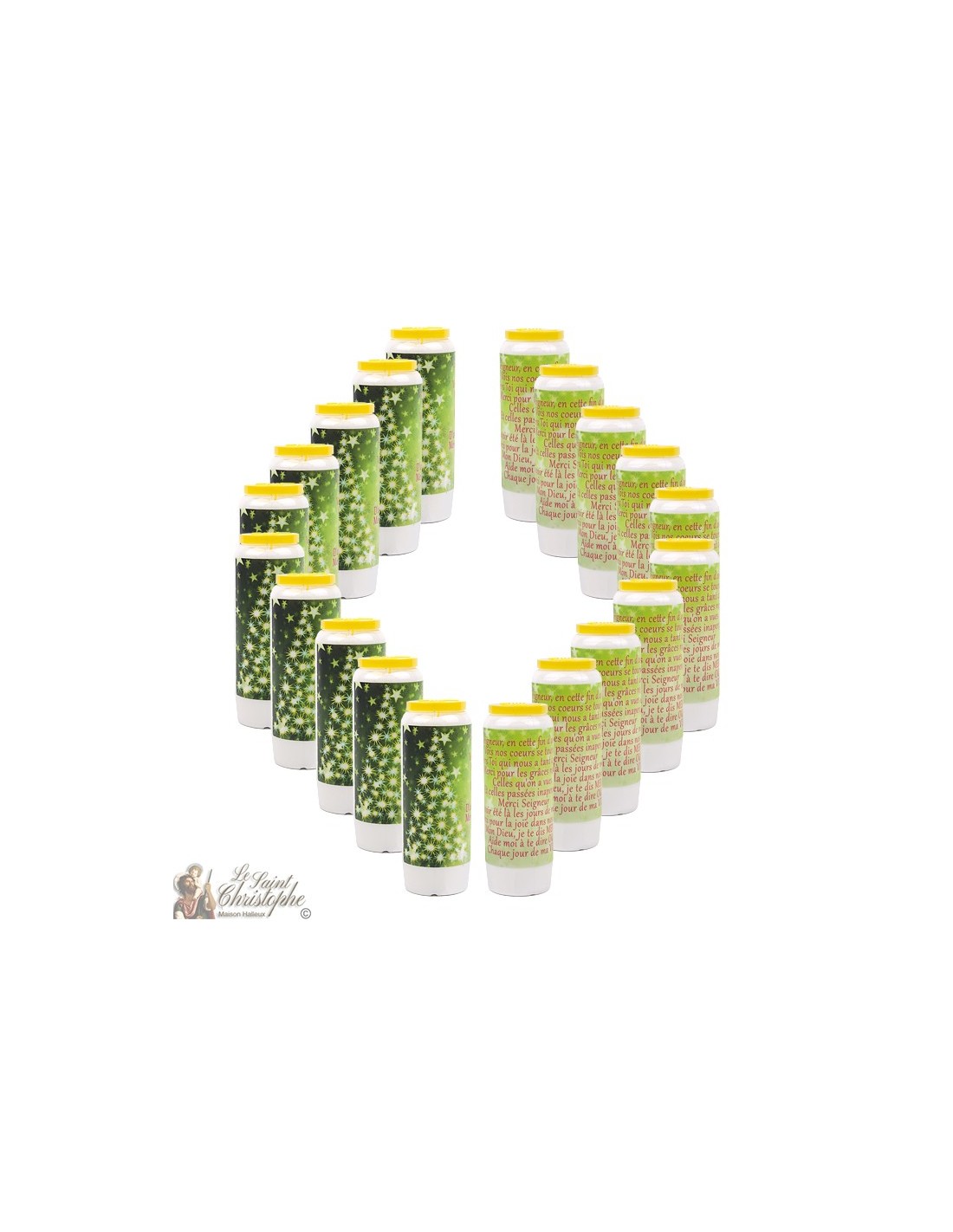 (20 velas de novena neutras y 20 pegatinas estarán en la caja)