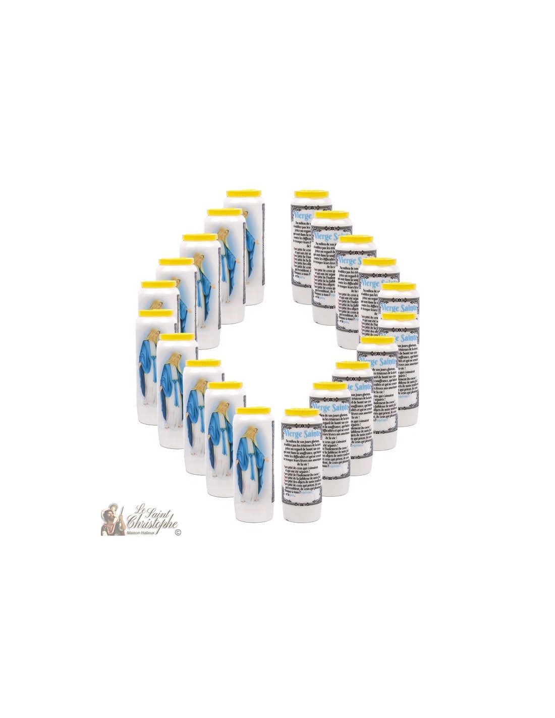 (20 velas de novena neutras y 20 pegatinas estarán en la caja)