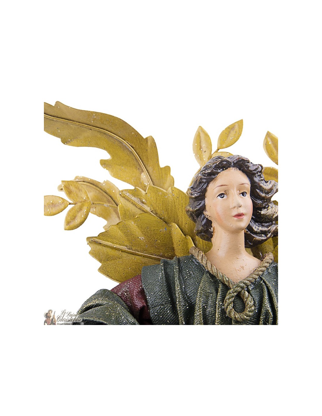 Cruz de madera decorada con un pequeño ángel de terracota para la habitación de los niños con texto:Texto en francés: ser una buena persona, .....Dimensiones: 12 x 20 cmPeso: 240gr