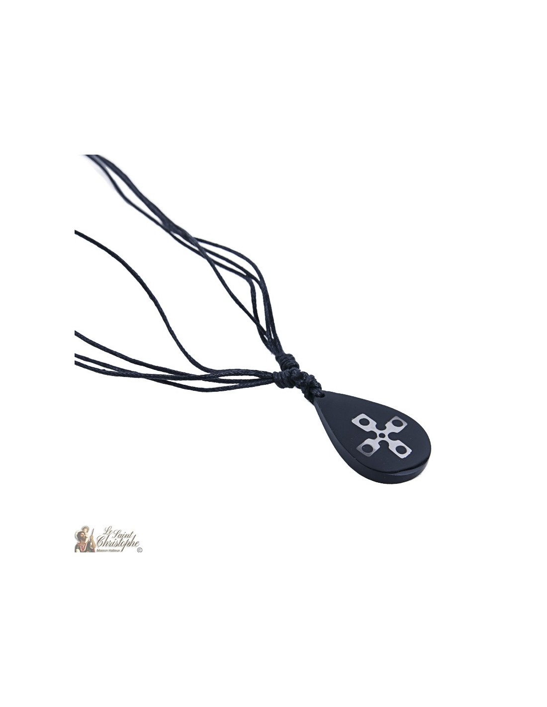 Price only for resellerscuerda del collar y colgante de lágrima incrustaciones de resina negro con un color plata metálico cruz.