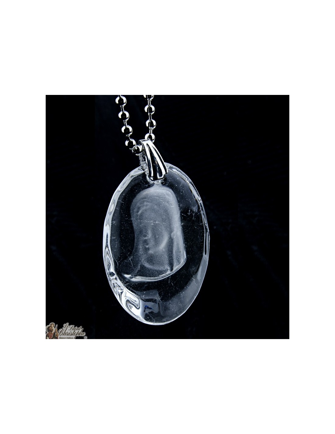 Price only for resellersHermoso techo oval de vidrio transparente, con la cara de la Virgen grabado en la masa.