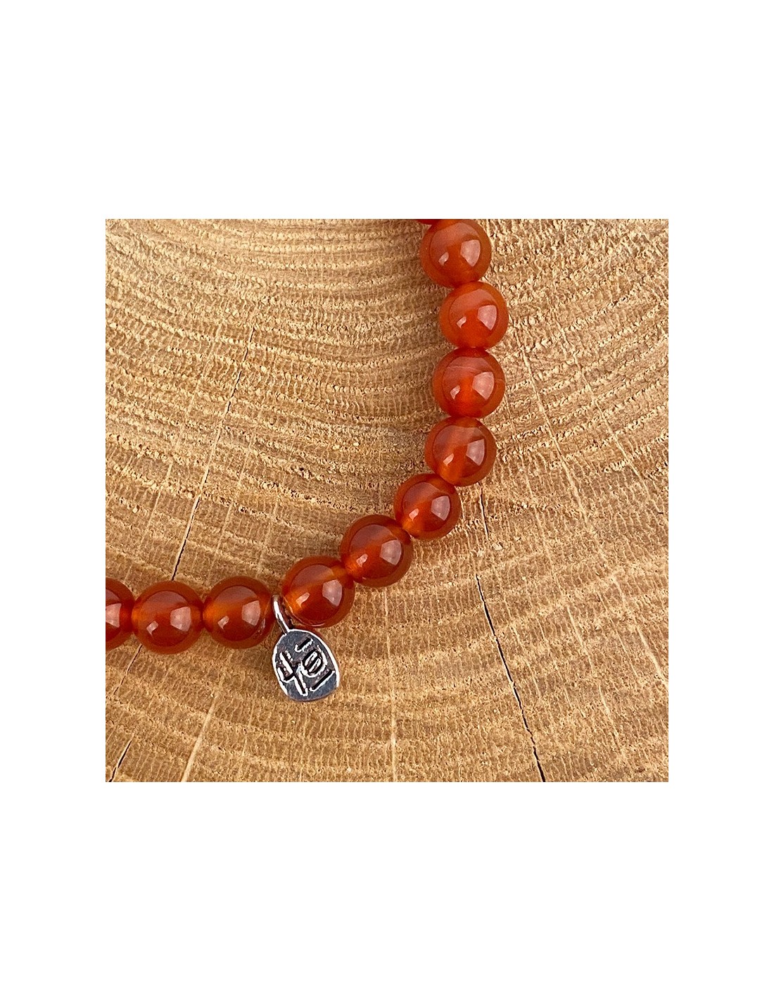 Price only for resellersPulsera con hilo elástico y cornalina, fina piedra natural. Junto con un pequeño colgante de plata, esta pulsera da un toque suave y sereno a su muñeca.