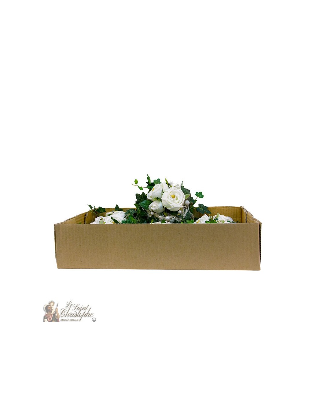 Price only for resellersRamo de flores artificiales compuesto por rosas blancas, hiedra, cintas, cordones, perlas... El ramo forma una corona de flores.