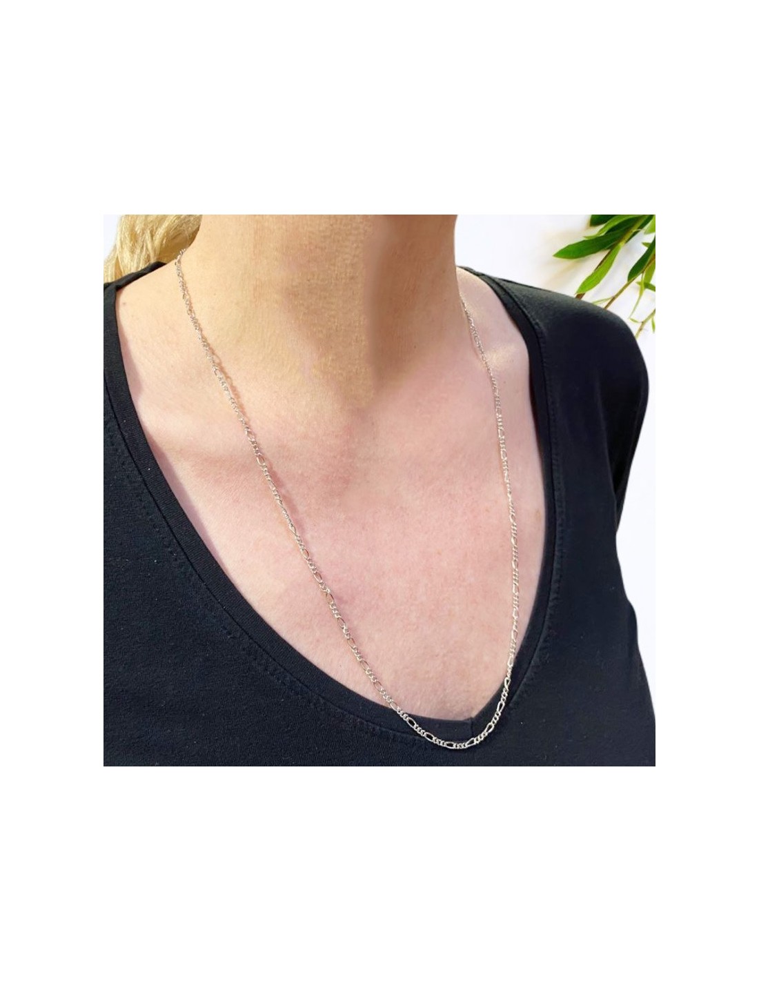 Cadena Figaro de plata 925 rodiada - 65 cm