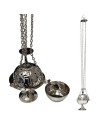 Iglesia mesa con el incensario de cruz - color plateado Incensario de plata, hermoso acabado, de 3 piezas, cubierta, recipiente interior para el carbón,...
