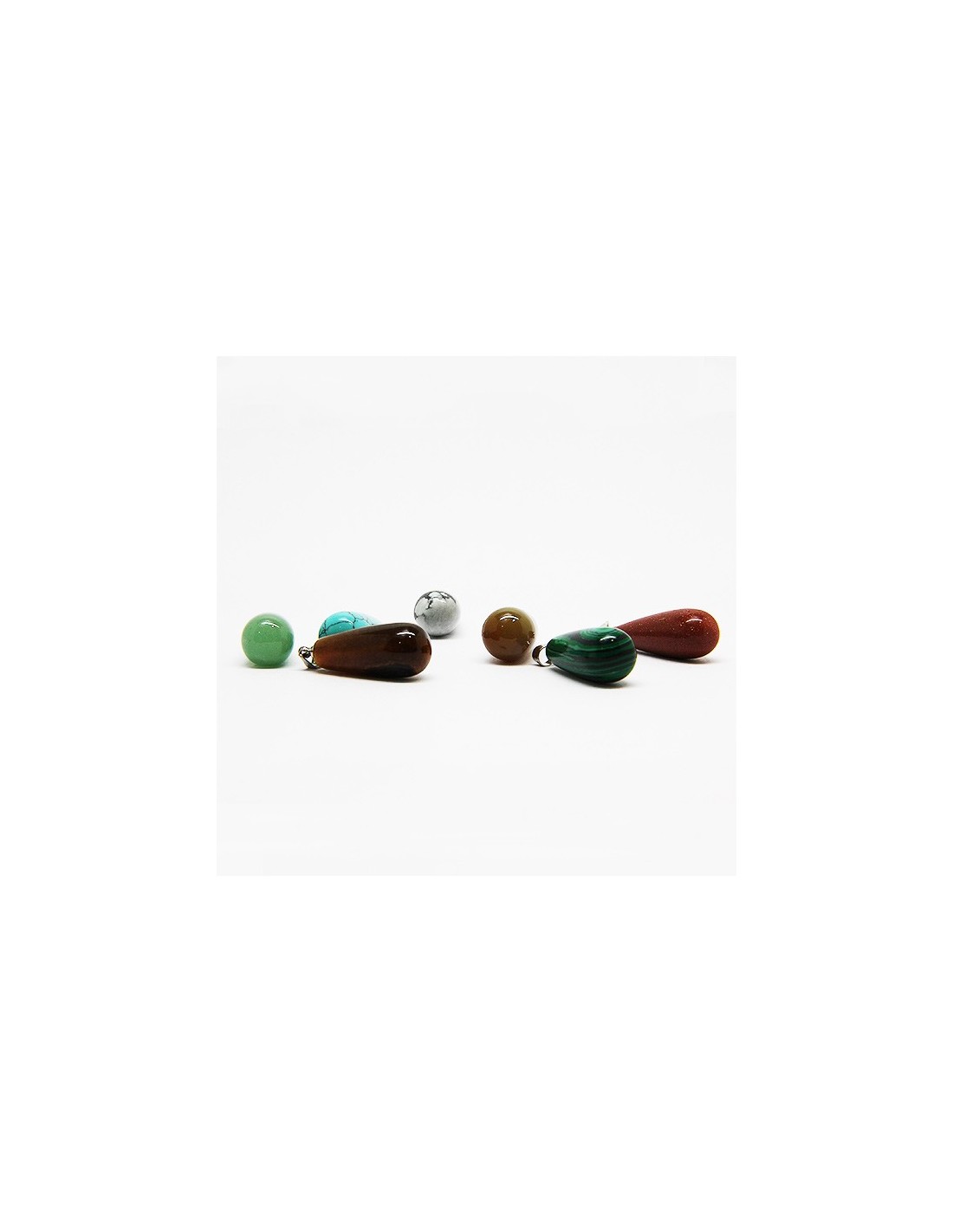 Le set : Quartz rose, Aventurine verte, Améthyste, Turquoise reconstituée, Malachite synthétique, Oeil de tigre, Cornaline.