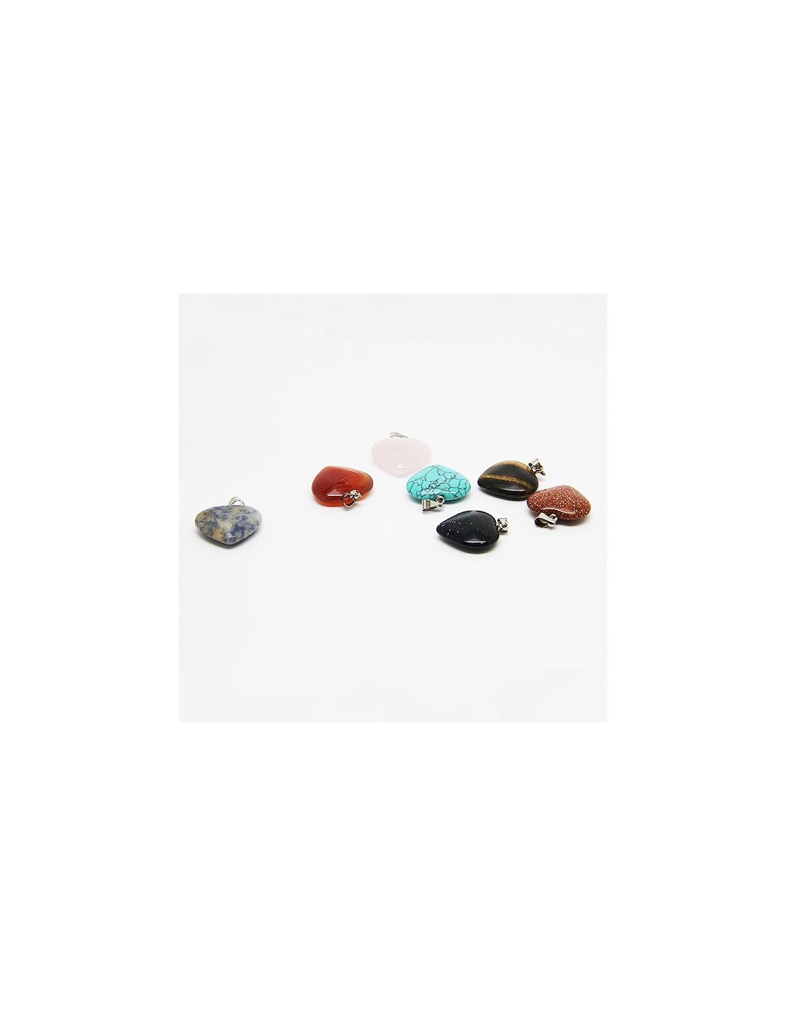 Le set : Quartz rose, Aventurine verte, Turquoise reconstituée, Sodalite, Obsidienne flocon de neige, Oeil de tigre, Cornaline.