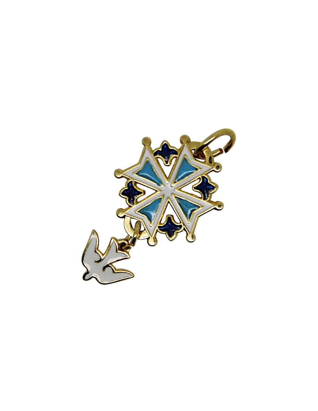 Price only for resellersCroix Huguenote plaqué or colorée bleu , blanc .