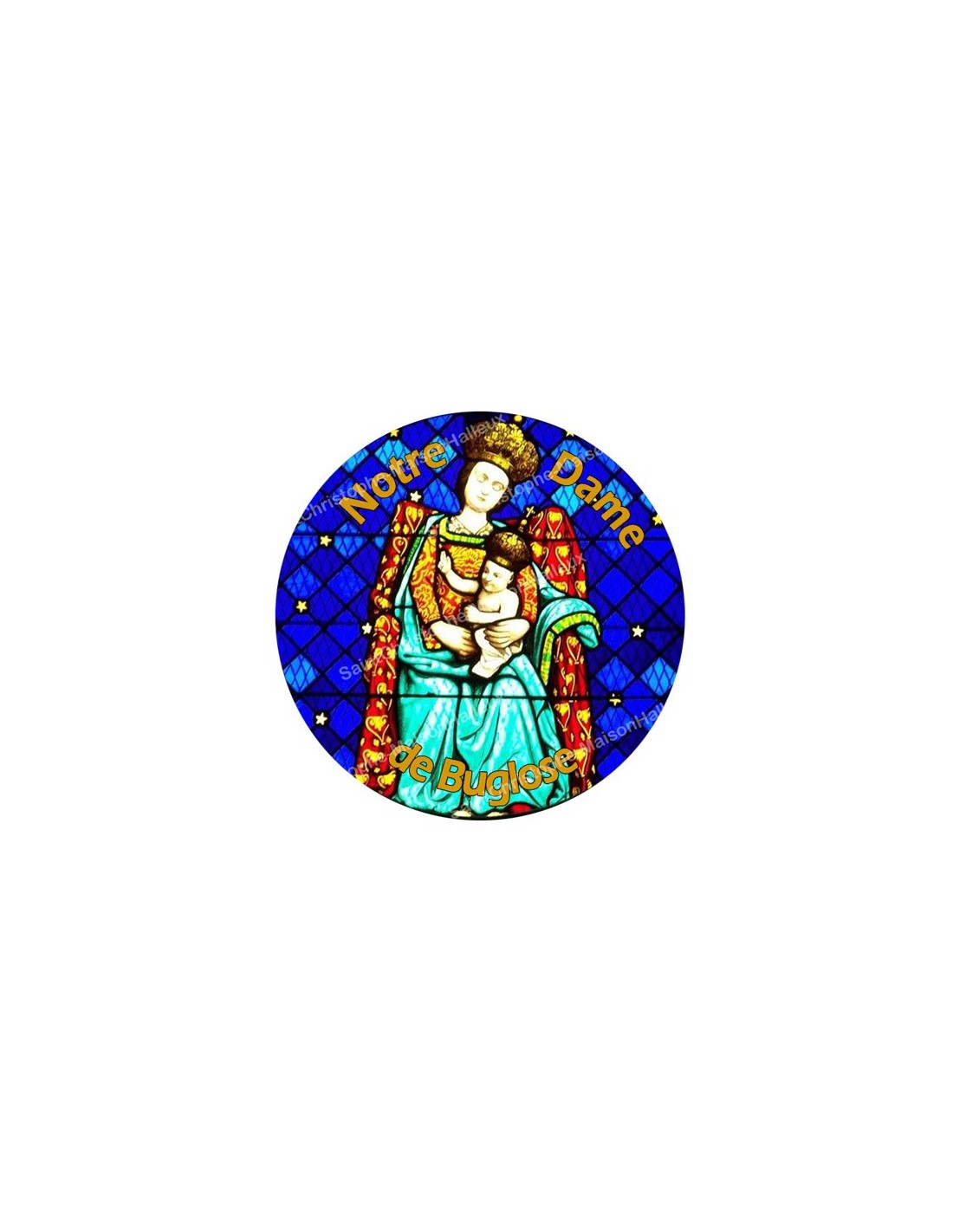 Price only for resellersAutocollants ronds - 45 mm - "Notre-Dame Buglose 2 orange".