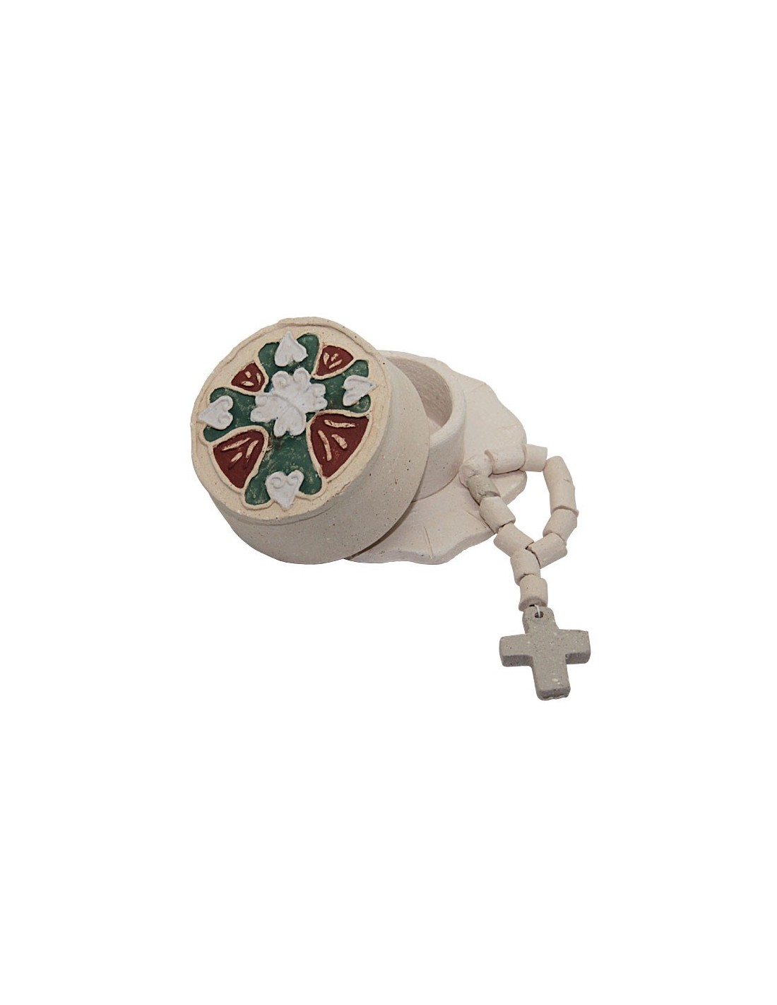 Price only for resellersTrès jolie boite en Terre cuite avec croix moderne et dizaine également en Terre cuite de couleur naturel .