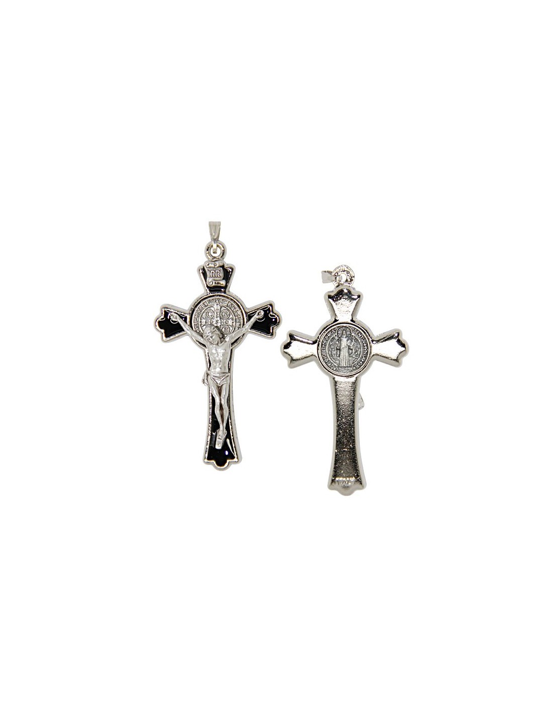 Croix de Saint Benoit argentée - émaillé noire