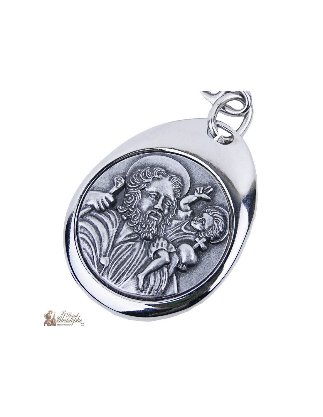 Price only for resellersPorte-clés en métal argenté de Saint Christophe