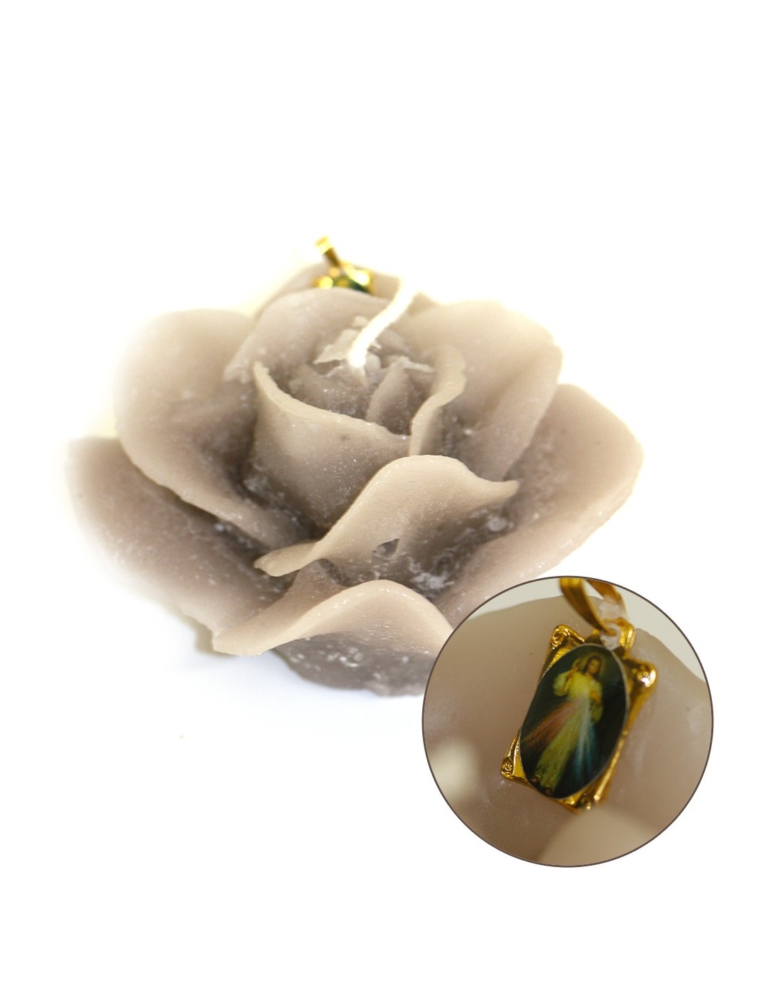 Price only for resellersBougie en forme de rose avec médaille du Christ Miséricordieux.