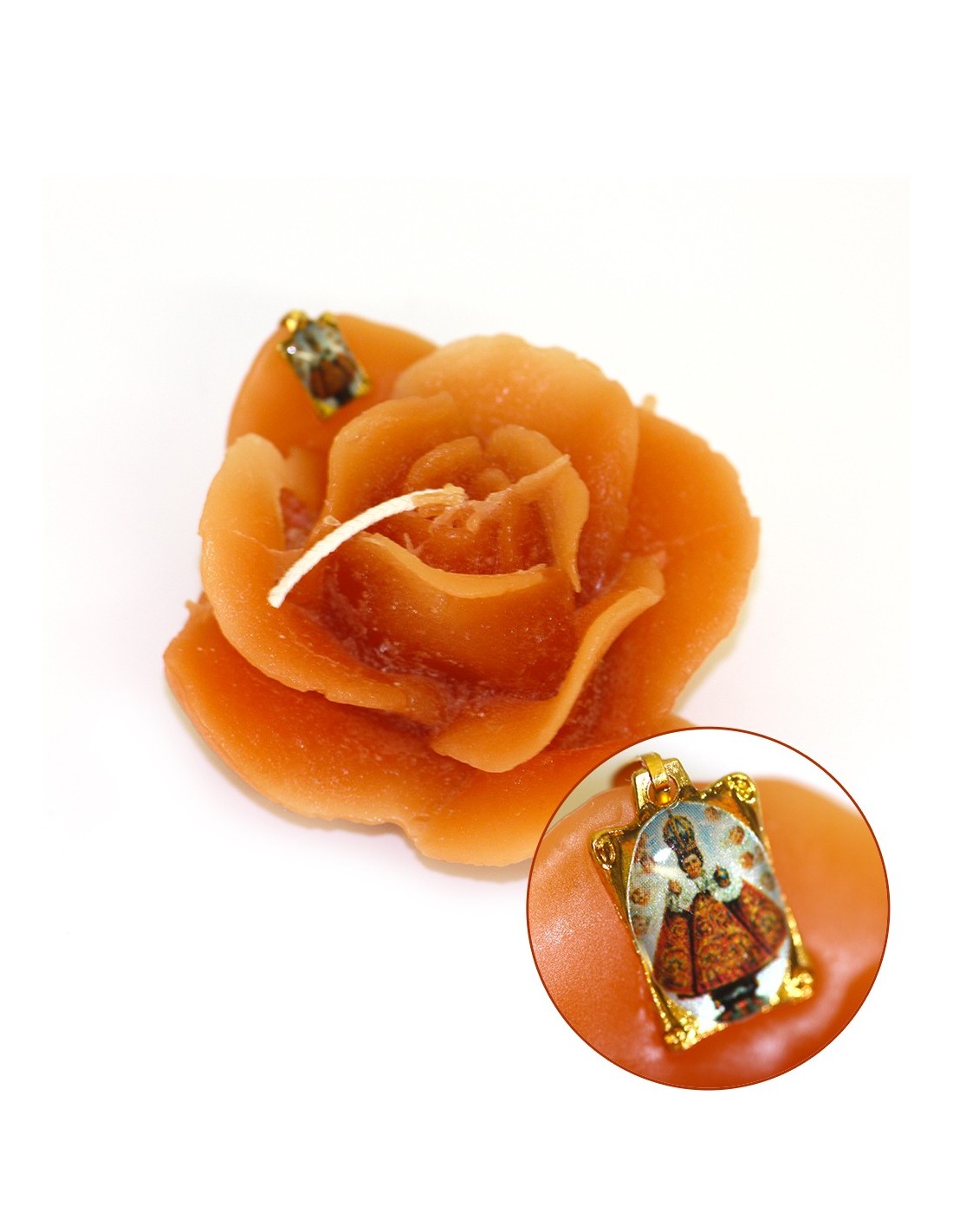 Price only for resellersBougie en forme de rose avec médaille du Petit Jésus de Prague