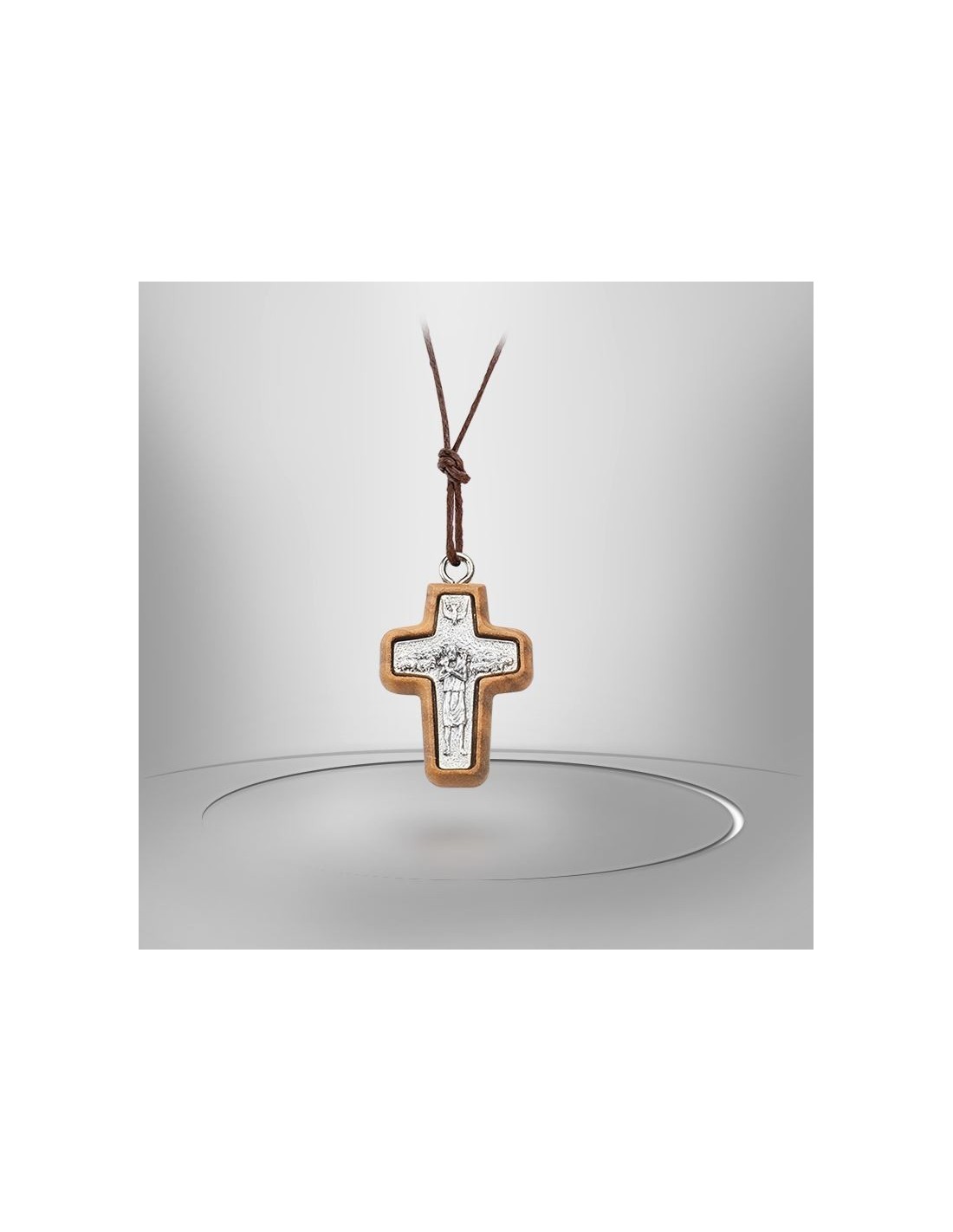 Collier Cordon avec Croix Papale en bois d'olivier - métal Argenté
