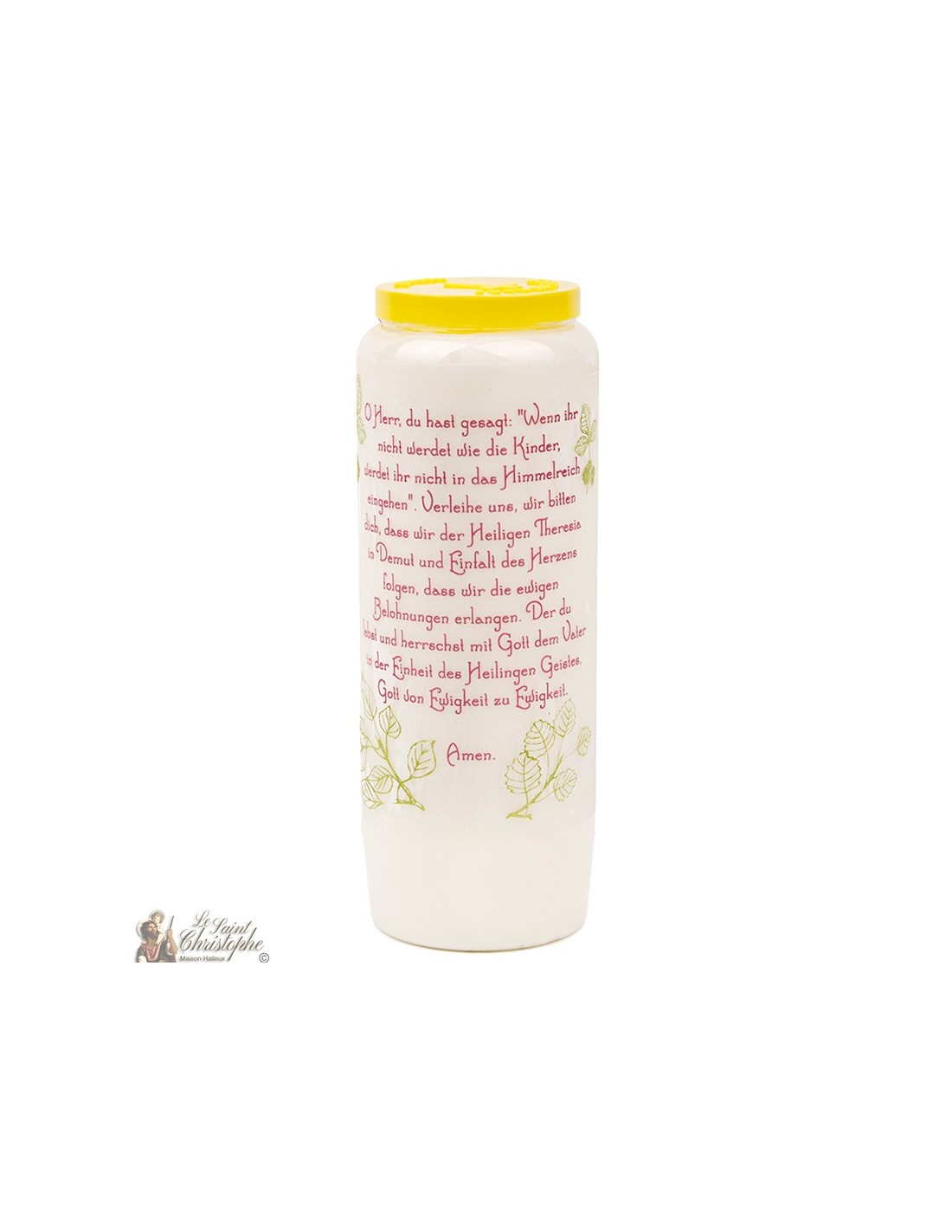 Véritable Neuvaine 100 % végétale, combustion 9 jours (laisser brûler jour et nuit).Pas de colorant, pas de produit chimique.Notre bougie est testée dans notre département laboratoire pour garder la meilleur qualité.