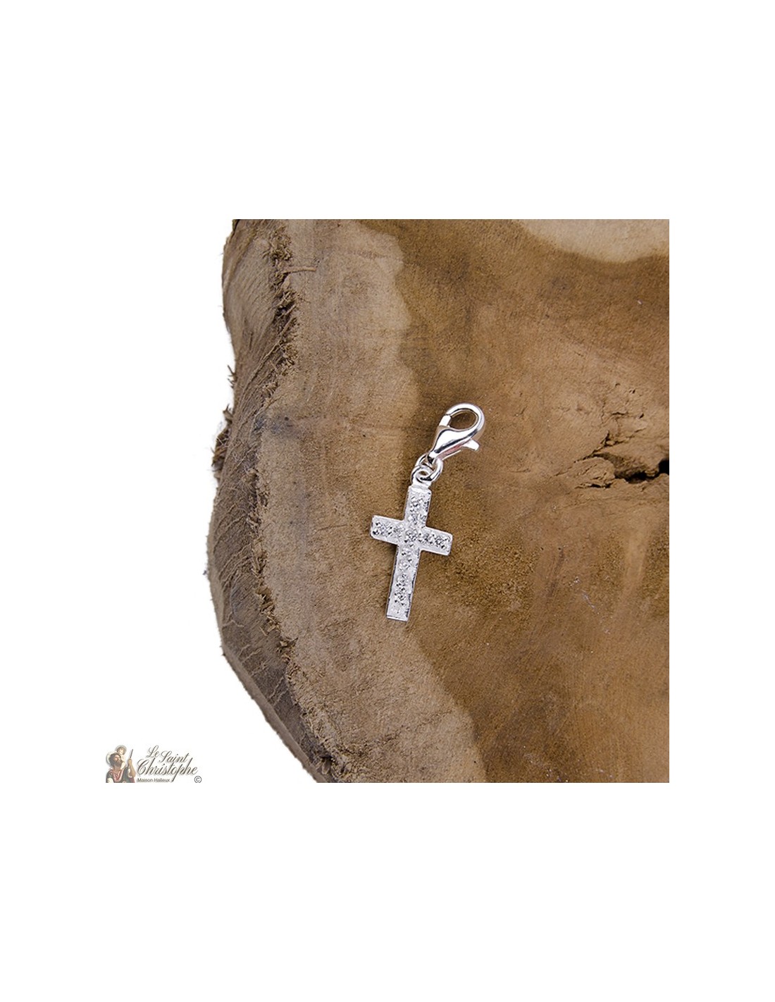 Pendentif en argent 925 plaqué or en forme de croix et incrusté de cristaux. Un bijou élégant et brillant !