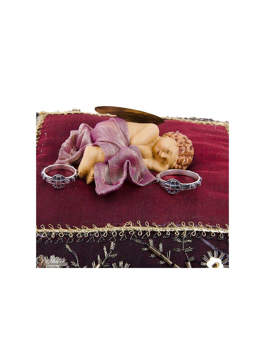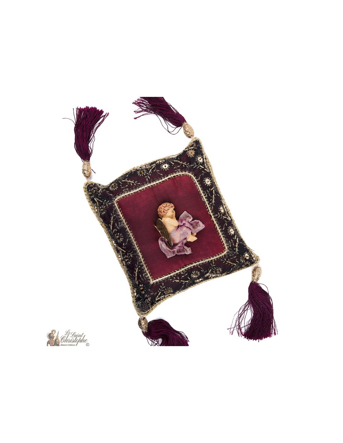 Price only for resellersCoussin avec Ange en terre cuite et ailes dorées
