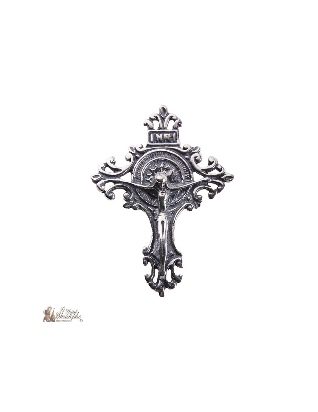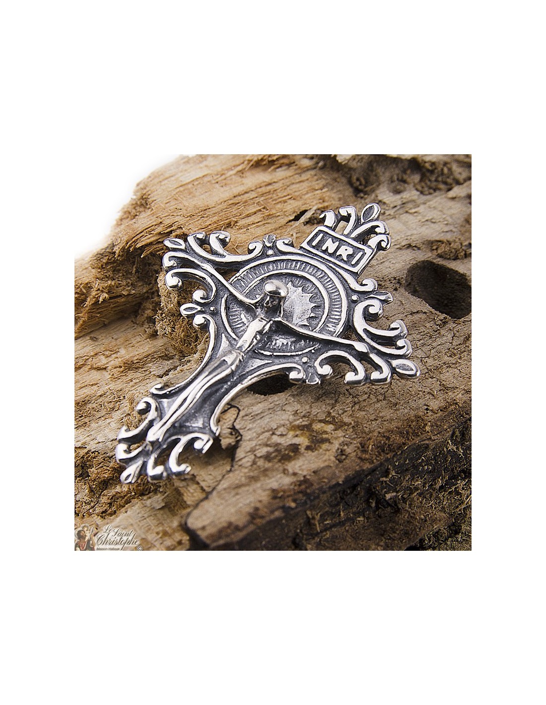 Pendentif en argent 925 plaqué or en forme de croix et incrusté de cristaux. Un bijou élégant et brillant !