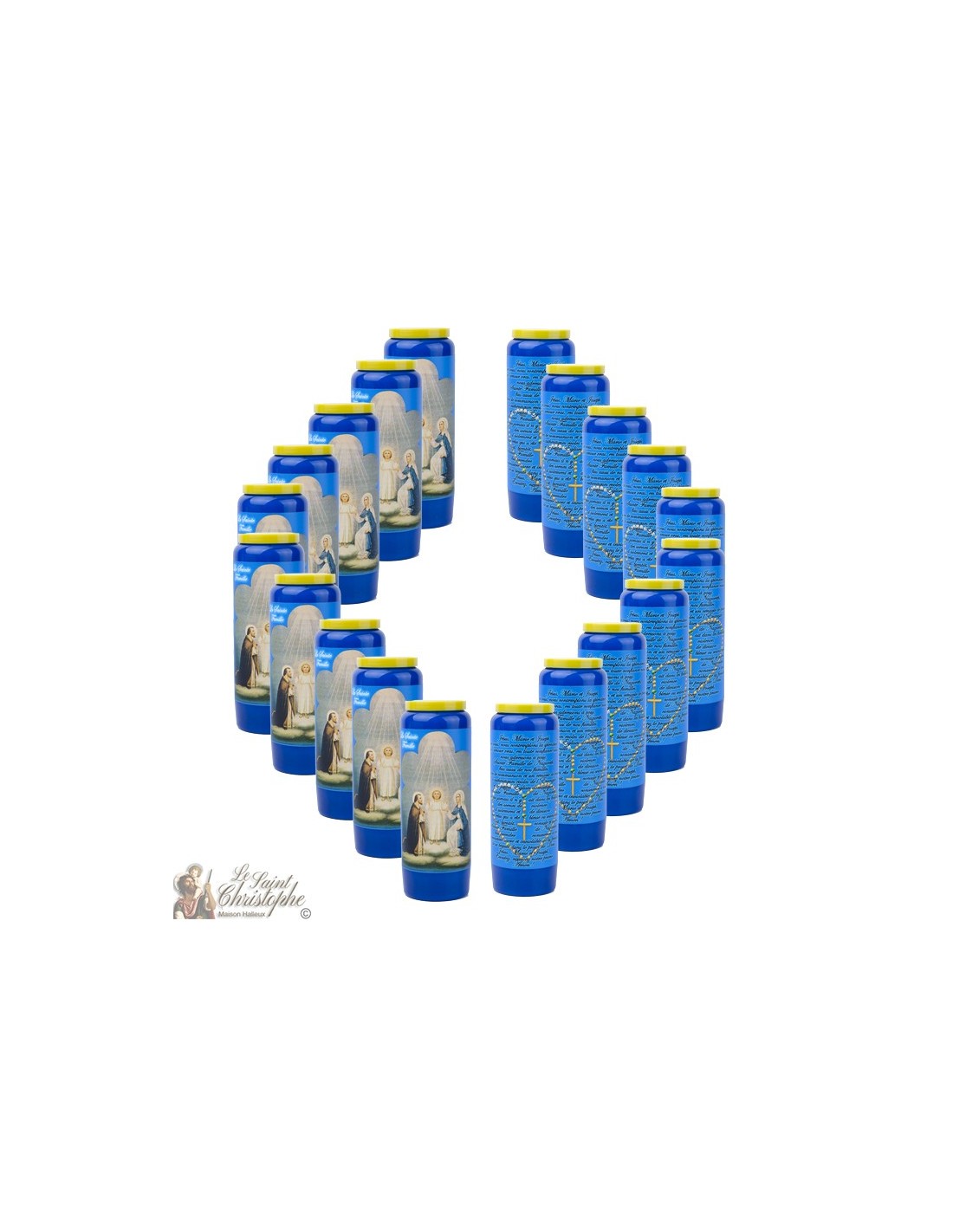 Véritable Neuvaine 100 % végétale, combustion 9 jours (laisser brûler jour et nuit).Pas de colorant, pas de produit chimique.Notre bougie est testée dans notre département laboratoire pour garder la meilleur qualité.Un carton contient 20 bougies. 56 cartons constituent une palette complète.Poids : 10kg700Dimensions : 34x28x20 cm