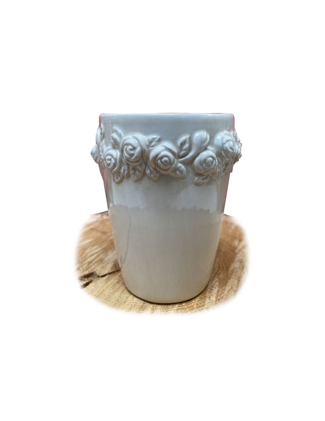 Price only for resellersPot céramique Anglaise couleur crème avec fleurs sculptées.