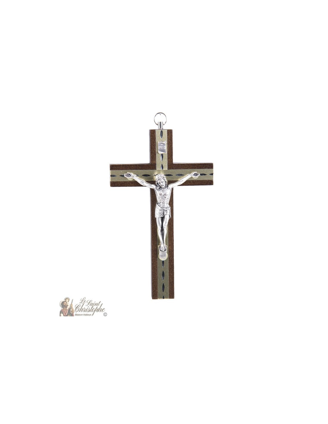 Croix bois brun avec Christ metal doré - 15 cm