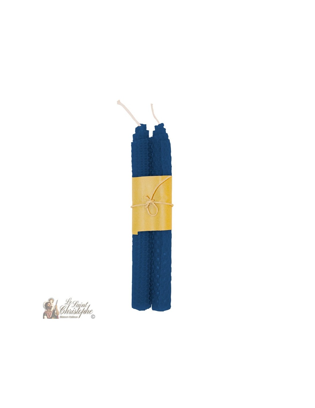 Price only for resellersPaire de bougies à vœux colorées dans la masse en bleu. La cire est roulée et couverte d'un motif hexagonal évoquant une ruche.