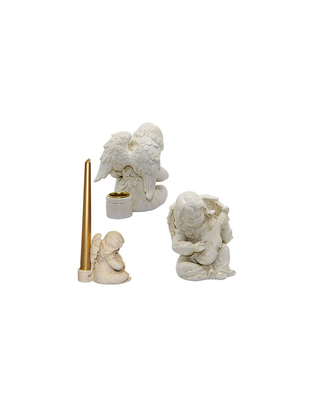 Price only for resellersJoli bougeoir en céramique anglaise couleur crème en forme d'ange musicien. Set de 3 modèles.